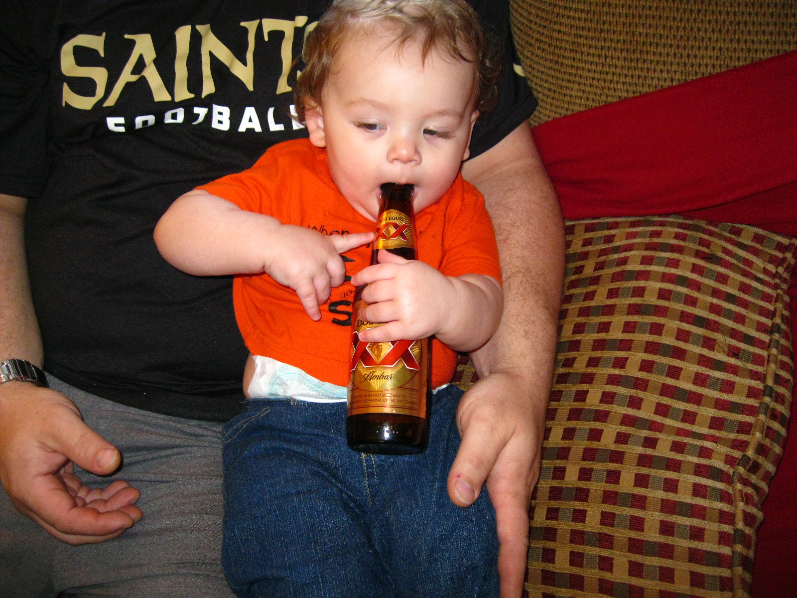 Don't fret. It's empty. I do think it's hilarious that he is pointing to the label though.